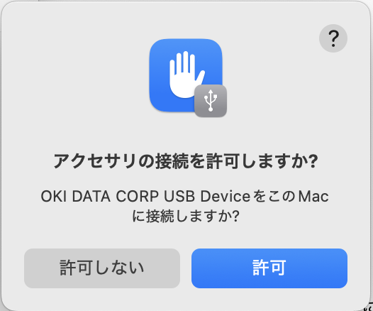 もし「許可しない」をクリックしてしまったら、ケーブルを抜いてさしなおしてください。